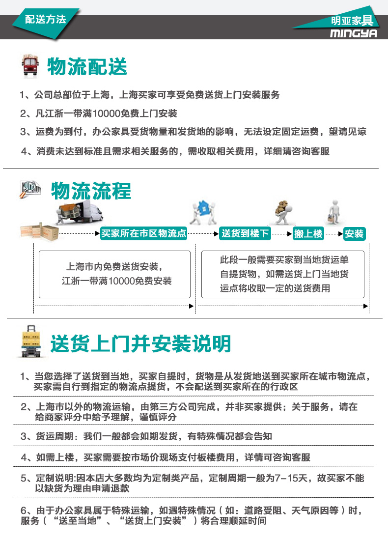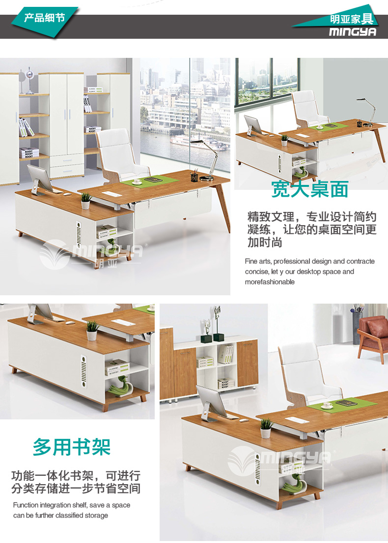 上海明亞辦公家具有限公司成立于2012年,擁有高素質(zhì)的管理市場(chǎng)銷售人才和優(yōu)秀的專業(yè)設(shè)計(jì)人才。是一家專業(yè)從事設(shè)計(jì)、生產(chǎn)及銷售全套中高檔環(huán)保健康辦公家具為一體的公司。主要產(chǎn)品涵蓋:大班臺(tái)系列、辦公椅系列、文件柜系列、屏風(fēng)系列、隔斷系列,會(huì)議桌系列等,可來(lái)樣定制辦公家具并定做異形柜上百種規(guī)格。 上海明亞辦公家具推行:“免費(fèi)的咨詢顧問、免費(fèi)的電腦輔助繪圖設(shè)計(jì)服務(wù)、免費(fèi)的現(xiàn)場(chǎng)產(chǎn)品模擬示范服務(wù)、快速準(zhǔn)時(shí)的送貨服務(wù)、專業(yè)安裝與售后維修服務(wù)”等。這些措施確保了客戶在選擇明亞辦公家具品牌后,能夠讓客戶坐享其成,享受至善至美的售后服務(wù),讓我們的事業(yè)共同發(fā)展,共享豐碩!我們以優(yōu)秀的品質(zhì)、環(huán)保概念、優(yōu)惠的價(jià)格,優(yōu)質(zhì)的服務(wù)回報(bào)廣大國(guó)內(nèi)外客戶,以良好的設(shè)計(jì)及環(huán)保理念打造明亞品牌。愿上海明亞能為更多的您和您的公司提供更多的服務(wù)。 |