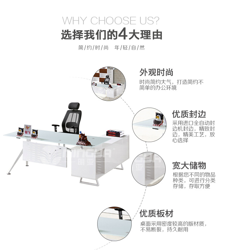 上海明亞辦公家具有限公司成立于2012年,擁有高素質(zhì)的管理市場(chǎng)銷(xiāo)售人才和優(yōu)秀的專(zhuān)業(yè)設(shè)計(jì)人才。是一家專(zhuān)業(yè)從事設(shè)計(jì)、生產(chǎn)及銷(xiāo)售全套中高檔環(huán)保健康辦公家具為一體的公司。主要產(chǎn)品涵蓋:大班臺(tái)系列、辦公椅系列、文件柜系列、屏風(fēng)系列、隔斷系列,會(huì)議桌系列等,可來(lái)樣定制辦公家具并定做異形柜上百種規(guī)格。 上海明亞辦公家具推行:“免費(fèi)的咨詢(xún)顧問(wèn)、免費(fèi)的電腦輔助繪圖設(shè)計(jì)服務(wù)、免費(fèi)的現(xiàn)場(chǎng)產(chǎn)品模擬示范服務(wù)、快速準(zhǔn)時(shí)的送貨服務(wù)、專(zhuān)業(yè)安裝與售后維修服務(wù)”等。這些措施確保了客戶(hù)在選擇明亞辦公家具品牌后,能夠讓客戶(hù)坐享其成,享受至善至美的售后服務(wù),讓我們的事業(yè)共同發(fā)展,共享豐碩!我們以?xún)?yōu)秀的品質(zhì)、環(huán)保概念、優(yōu)惠的價(jià)格,優(yōu)質(zhì)的服務(wù)回報(bào)廣大國(guó)內(nèi)外客戶(hù),以良好的設(shè)計(jì)及環(huán)保理念打造明亞品牌。愿上海明亞能為更多的您和您的公司提供更多的服務(wù)。 |